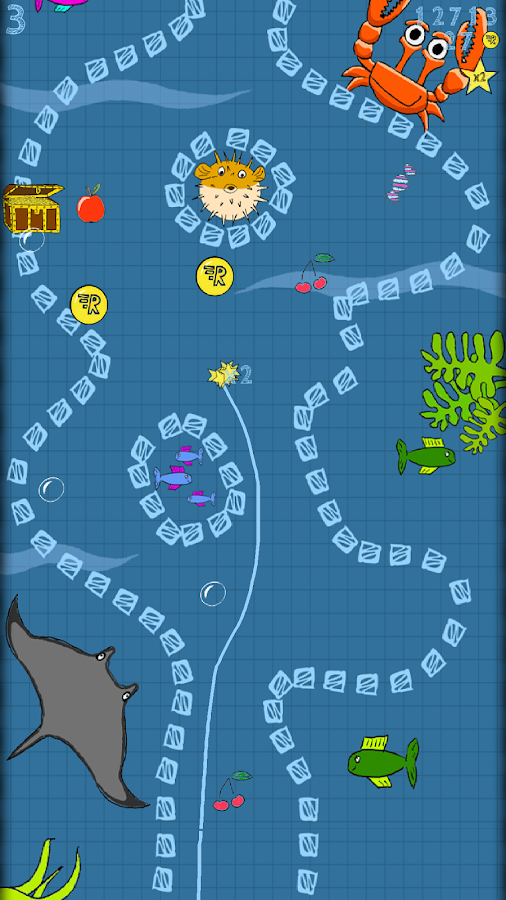 lovely hand drawn tracks are full of collectable fruits, stars and