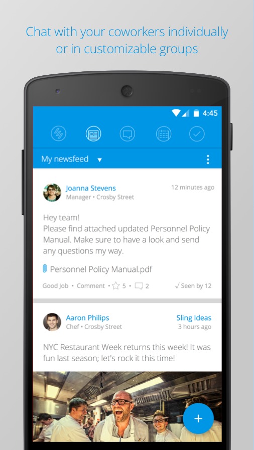 around four features - shifts, tasks, messages and newsfeed, - it allows